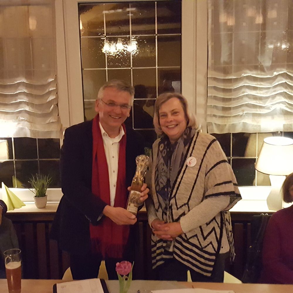 Die OV-Vorsitzende Elke Rybarczyk bedankte sich am Ende der Diskussion bei Hermann-Josef Vogt und den Anwesenden und wünschte Hermann-Josef viel Erfolg in seinem Wahlkampf. Mit einem kleinen Präsent und dem Versprechen ihn im Waklkampf tatkräftig zu unterstützen wurde Hermann-Josef von der Versammlung mit Beifall verabschiedet.