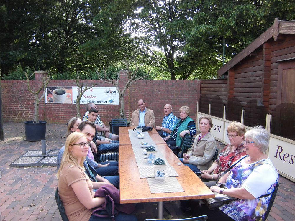 Allen wurde hier deutlich, dass diese Menschen kein einfaches Leben geführt haben mussten. Der Rundgang im Museum führte uns dann in den Arbeitsbereich. Riesige Maschinen zur Produktion von Textilien beeindruckten uns. Der Schwerpunkt der Erläuterungen bezog sich neben der Erklärung der Funktion der Maschinen auf die Arbeit der Arbeiter und Arbeiterinnen an diesen Maschinen. Uns wurde schnell klar, dass diese Arbeit unter großem Lärm, in stickigem Großraum, in Akkordzeit und in eintönigem Arbeitsschritten zu großer körperlichen und seelischen Belastung führen konnte. Zum Ende unseres Besuches schauten wir uns die Ausstellung zur 150-Jahrfeier der SPD im UB Borken an. Leider waren nicht mehr alle Exponate zu sehen. Trotzdem beeindruckend! Bei netten Gesprächen – nicht nur über das Gesehene im Textilmuseum, Kaffee, Kuchen und anderen Getränken beendeten wir unseren Besuch.